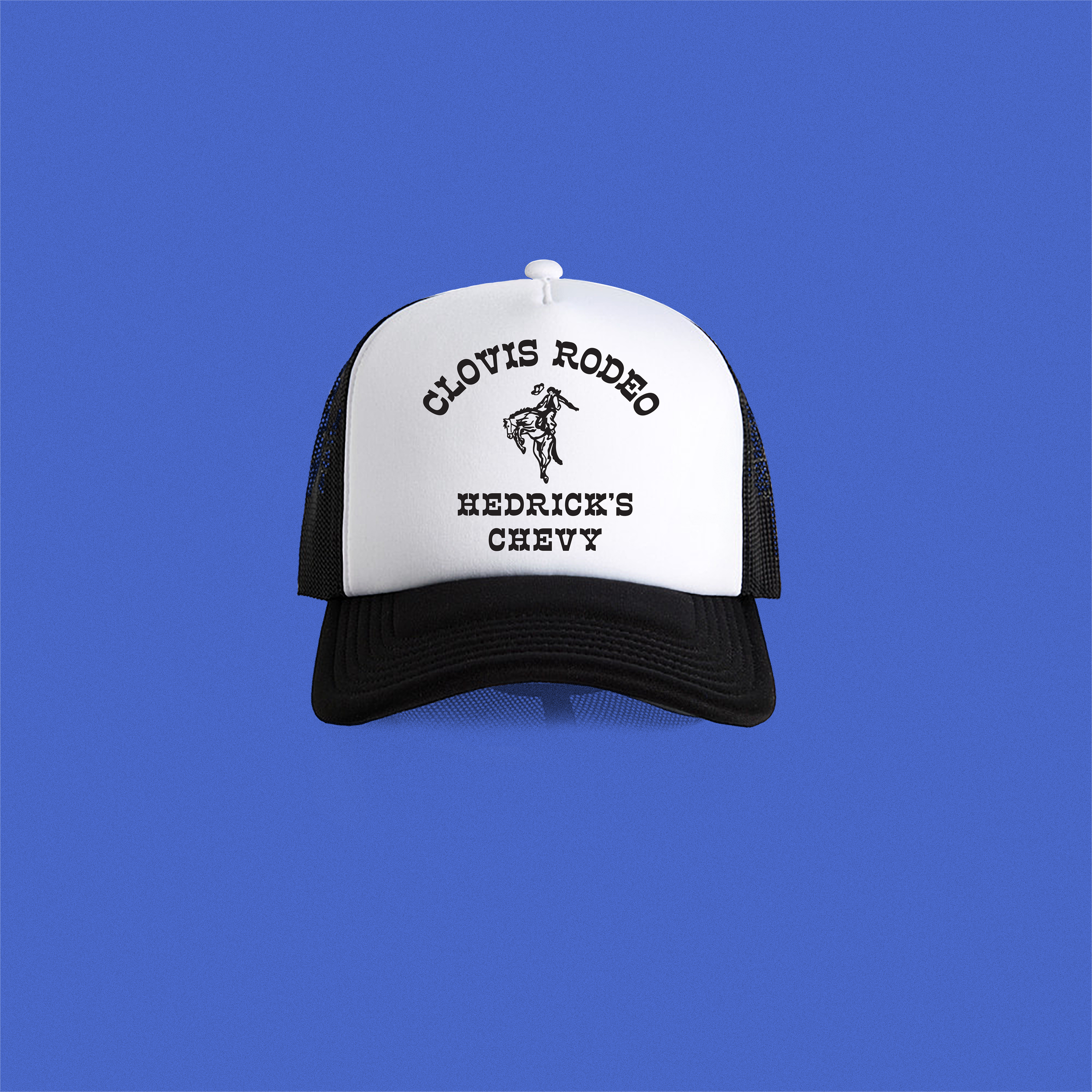 My friend owns and operates a Chevrolet dealership in Clovis, California. He came to me with an idea to create trucker hats for the annual Clovis Rodeo. He had physical ephemera from previous years’ rodeos and wanted to try and incorporate those coupled with Western type and historical slogans.